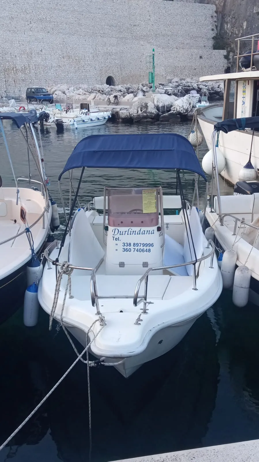 Lo scafo, dotato di motore Yamaha 40 cv, può ospitare fino a 7 persone ed è completo di tutte le dotazioni di sicurezza, tendalino per l’ombra, prendisole e scaletta per la risalita, per garantirti comfort durante tutta l’esperienza.